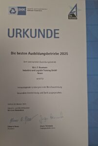 The graduates of the IHK examination for warehouse professions in autumn 2024/25 received their certificates and examination results at the award ceremony. The best participants were honoured for their outstanding performance with funding for the next qualification level. Particularly pleasing: the graduates from B.I.L.T. were also among the best of the year. Course director Mike Krause presented the awards and congratulated the successful candidates together with lecturer Karsten Wirtz.
